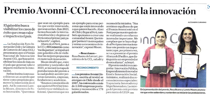 El Premio Nacional de Innovación Avonni – CCL, busca visibilizar los mejores casos de éxito que contribuyen con el desarrollo sostenible del país, mediante la innovación.